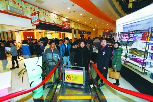 新世界百貨崇文店“60小時(shí)不打烊”活動(dòng)火爆異常。距開門還有幾分鐘,商場門口已聚集了大批等待入場的顧客。