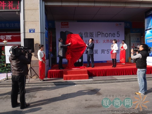聯(lián)商網(wǎng)消息:備受關(guān)注的行貨版iPhone5于今天全面上市。據(jù)了解,國(guó)美電器作為蘋(píng)果授權(quán)銷(xiāo)售渠道,今日凌晨開(kāi)始正式首銷(xiāo)iPhone5!浙江國(guó)美更分別于秋濤路新活館及立元大廈旗艦店舉行了電信版和聯(lián)通版iPhone5的首發(fā)儀式。即日起消費(fèi)者可在浙江國(guó)美電器任意門(mén)店購(gòu)買(mǎi)到蘋(píng)果iPhone5。