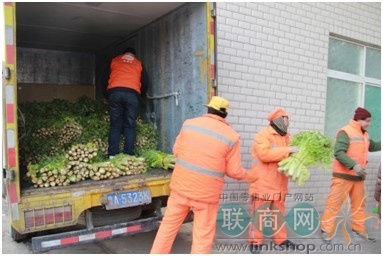 濟(jì)南蘇寧社工志愿者將愛心蔬菜發(fā)放給濟(jì)南市環(huán)衛(wèi)工人
