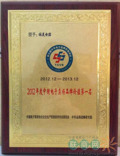 國美獲“中國電子賣場最具價(jià)值品牌”稱號(hào)