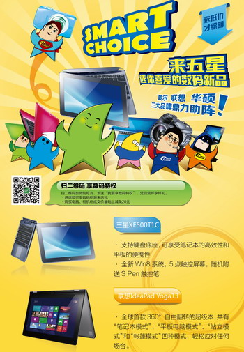 五星電器電腦事業(yè)部負(fù)責(zé)人表示,數(shù)碼產(chǎn)品更新?lián)Q代極快,時至今天曾經(jīng)輝煌一時的上網(wǎng)本已經(jīng)走完了5年的生命周期,取而代之的是更時尚、便攜的平板電腦和超級本。在平板電腦領(lǐng)域殺出了不少能拆卸、翻轉(zhuǎn)、平移的“變形本”,性能和便攜性上完全能代替上網(wǎng)本;外形上,屏幕和鍵盤能夠拆卸分離,同時滿足辦公和娛樂需求,比如三星500T。在超級本方面,聯(lián)想YOGA以360°自由翻轉(zhuǎn),筆記本、平板二合一出盡風(fēng)頭。