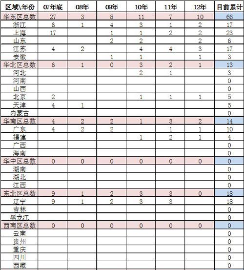 表一:TESCO樂購(gòu)在華網(wǎng)點(diǎn)布局