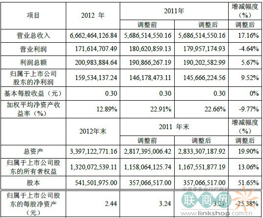 聯(lián)商網(wǎng)消息:新華都發(fā)布2012年業(yè)績(jī)快報(bào)。2012年,新華都實(shí)現(xiàn)營(yíng)業(yè)總收入66.62億元,比上年同期增長(zhǎng)17.16%,主要源自于門(mén)店數(shù)量增加的外延式發(fā)展和可比門(mén)店的內(nèi)涵式增長(zhǎng)。報(bào)告期實(shí)現(xiàn)凈利潤(rùn)1.6億元,較調(diào)整后的上年同期增長(zhǎng)9.52% 。