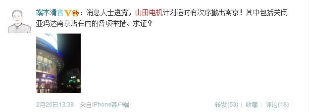 無(wú)獨(dú)有偶,今日,微博又有消息傳出,稱日本最大家電零售商山田電機(jī)也打算退出中國(guó)市場(chǎng)。