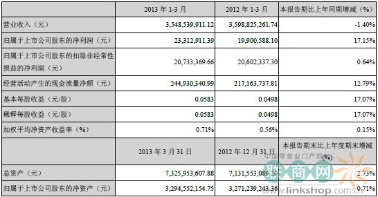 聯(lián)商網(wǎng)消息:人人樂發(fā)布2013年第一季度報(bào)告。報(bào)告顯示,人人樂在報(bào)告期內(nèi)實(shí)現(xiàn)營業(yè)收入35.49億元,同比下降1.4%;實(shí)現(xiàn)凈利潤2331萬元,同比上升17.15%。