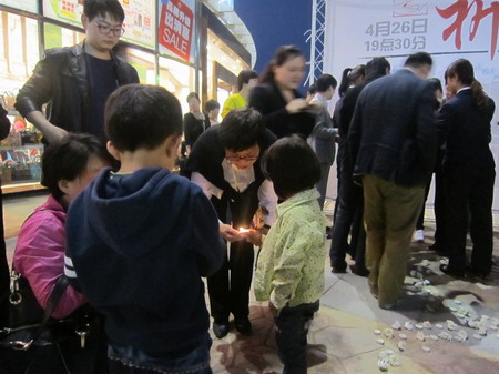 新百鄭州店店長在祈,F(xiàn)場,為小顧客點燃蠟燭