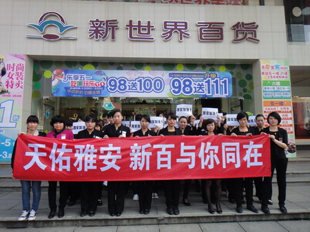 新百成都店在災(zāi)難發(fā)生24小時內(nèi),發(fā)起活動,祈禱雅安平安