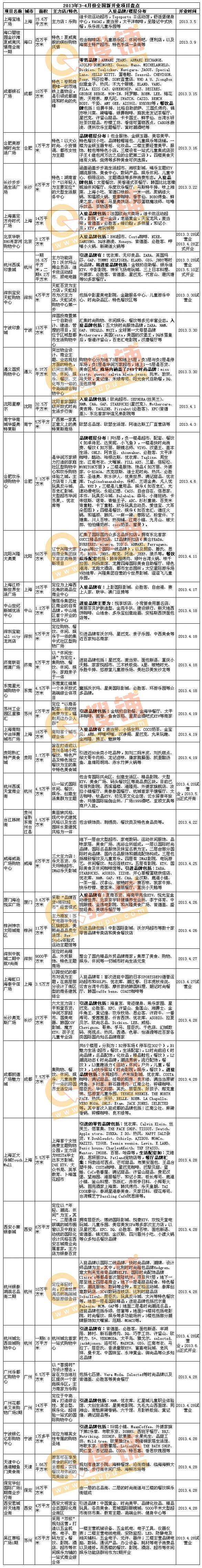 2013年3-4月份新開業(yè)購物中心項目盤點