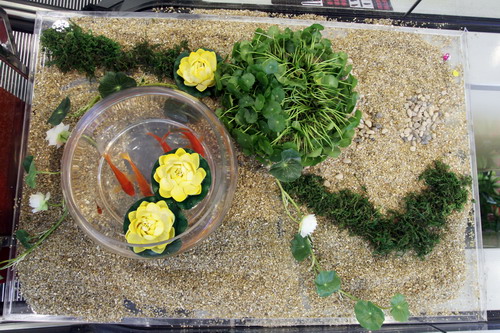 幾千條熱帶魚(yú)和近百條小魚(yú)悄然游進(jìn)溫州銀泰,在商場(chǎng)的電梯口、六樓、八樓均設(shè)點(diǎn)布置。吸引了不少小朋友駐足觀賞。在六樓與八樓展示的熱帶魚(yú)種類(lèi)主要有錦鯉、孔雀魚(yú)、血鸚鵡、銀龍魚(yú)、半身黑、黑蝴蝶、裸頂脂鯉等,工作人員也會(huì)定期更換魚(yú)種。而在扶梯中間則是小魚(yú)和花藝的小景布置形式出現(xiàn),小而精致,在乘坐扶梯的過(guò)程中也處處是風(fēng)景。