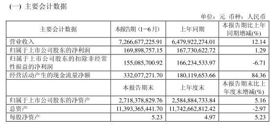 聯(lián)商網(wǎng)消息:昨日(8月16日),銀座股份發(fā)布半年報(bào),報(bào)告顯示,今年上半年,公司實(shí)現(xiàn)營業(yè)收入72.67億元,比上年同期增長12.14%,實(shí)現(xiàn)歸屬于母公司所有者的凈利潤為1.7億元,比上年同期增長1.29%;久抗墒找鏋0.327元。