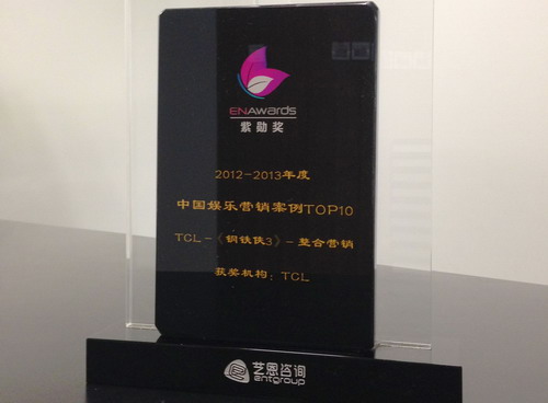 TCL榮獲藝恩咨詢“2013年度中國(guó)娛樂(lè)營(yíng)銷案例TOP10”獎(jiǎng)項(xiàng)