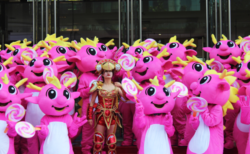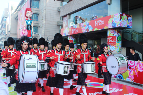 銀泰百貨杭州武林店,威武的騎士駿馬隊與英倫軍樂隊首先出來迎接觀眾,隨后15米“蛋糕屋”主題巡游花車、來自羅馬的弗拉維亞“Queen”盛裝出現(xiàn),為銀泰15周年大慶帶來絢麗開場,更有特別為本次周年慶量身定做、代表銀泰形象的10米巨型木偶Lili亮相,與在場觀眾熱情互動,引起現(xiàn)場轟動。