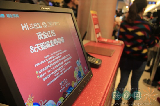 聯(lián)商網(wǎng)消息:11月16日(今日),阿里巴巴集團(tuán)董事局主席馬云親臨銀泰百貨杭州武林店7樓,在銀泰專設(shè)的支付寶付款柜臺現(xiàn)場體驗(yàn)了支付寶錢包當(dāng)面付功能。昨日,銀泰商業(yè)與支付寶錢包正式達(dá)成戰(zhàn)略合作,銀泰全國的門店,所有的收銀臺將在3周內(nèi)全部可以使用支付寶。此次馬云還與銀泰集團(tuán)董事長沈國軍,銀泰商業(yè)CEO陳曉東一行人舉行了媒體見面會。以下是現(xiàn)場圖片報(bào)道: