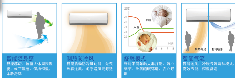 AI智芯溫控系統(tǒng),打造舒心自由空間。智能感應、監(jiān)控人體周圍溫度,糾正溫差,保持恒溫,體驗舒適;啟動防冷風功能,先預熱再送風,冬季送風更舒適;針對不同年齡人群打造舒眠模式,隨心調節(jié),改善睡眠環(huán)境,安心舒眠;冷暖氣流兩種模式,高效節(jié)能,恒溫舒適。
