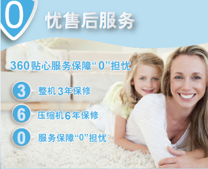 影雅INSIGNIA360健康空調更有“0” 憂售后服務,提供整機3年保修;壓縮機6年保修,360°貼心服務服務保障“0”擔憂!