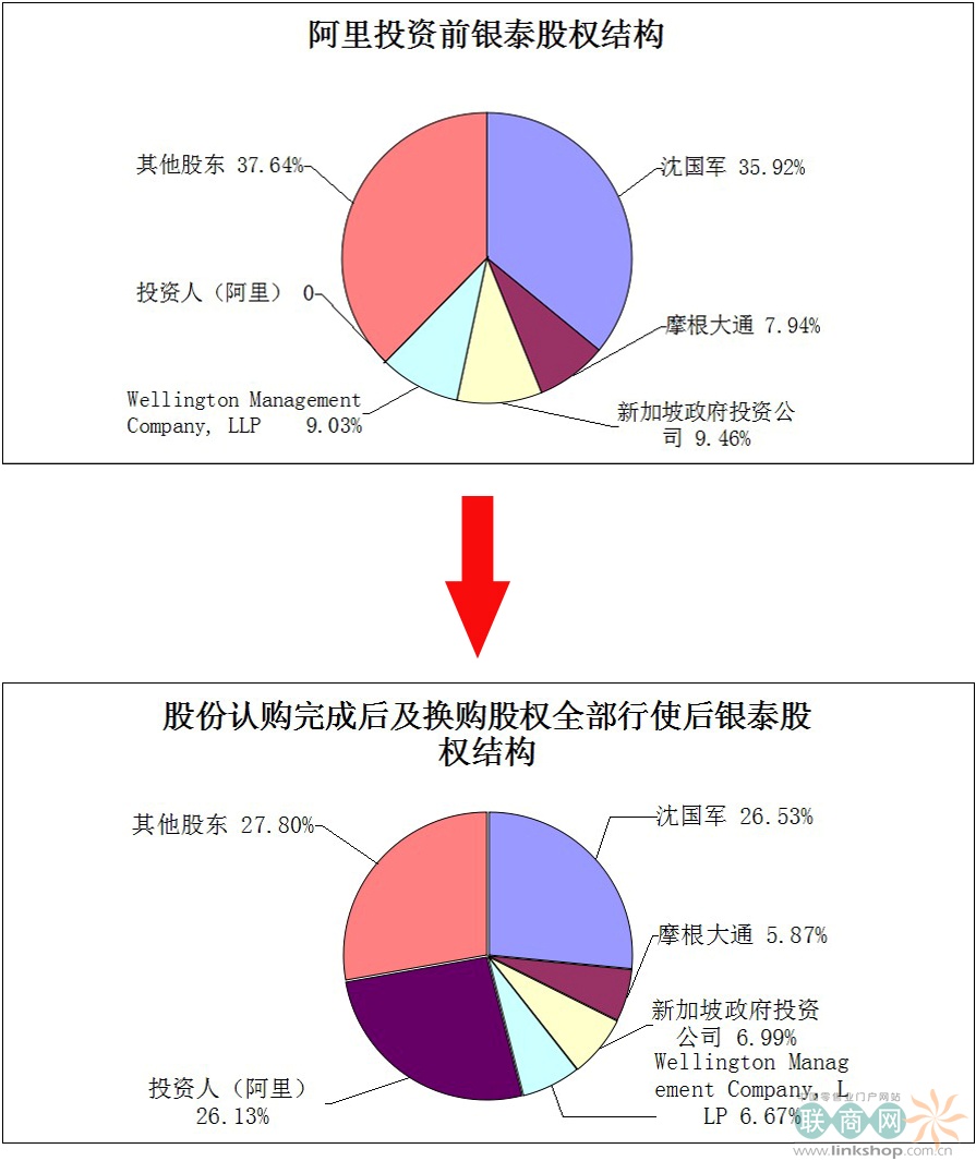 第三步,戰(zhàn)略投資,形成你中有我,我中有你的關(guān)系。3月31日,阿里通過持有銀泰商業(yè)9.9%股份及總額約37.1億元港元的可轉(zhuǎn)換債券,雙方最終成為“一家人”。