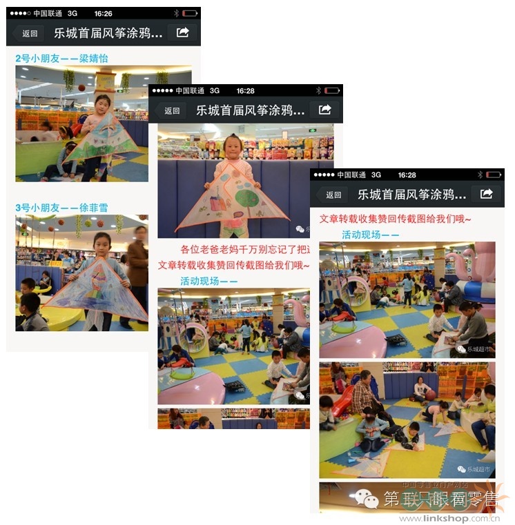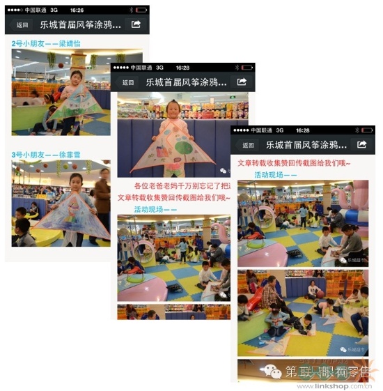 我們都知道新媒體與傳統(tǒng)媒體營銷中有一個差異就是分享(share),樂城正是利用這種方法鼓勵消費者進行分享,表面上是風箏涂鴉大賽,實際上把樂城的品牌推廣出去,暗度陳倉啊。