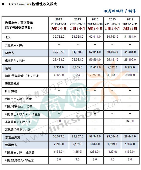 附CVS Caremark 2013財年重要數(shù)據(jù):