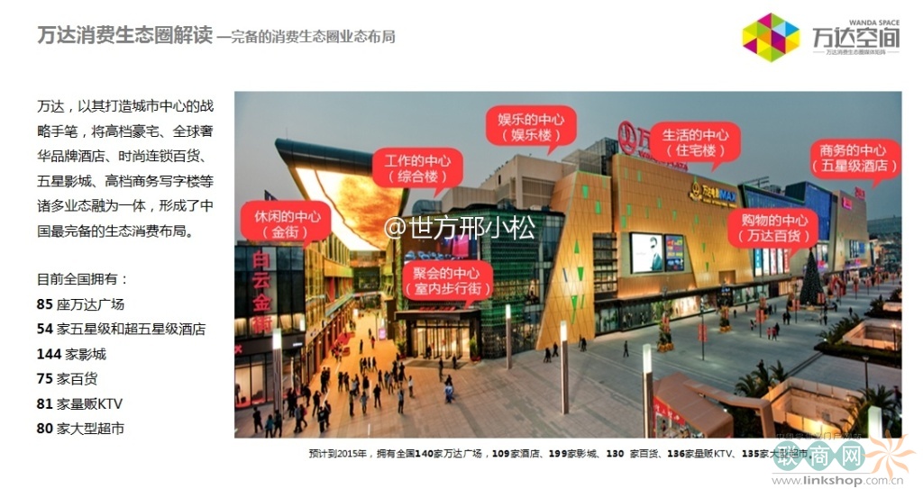 聯(lián)商網(wǎng)消息:萬達(dá),以其打造城市中心的戰(zhàn)略手筆,將高檔豪宅、全球奢華品牌酒店、時尚連鎖百貨、五星影城等諸多業(yè)態(tài)融為一體,形成了中國最完備的生態(tài)消費布局。消費生態(tài)圈中的億萬客流凸顯萬達(dá)獨有的無限商機(jī)。