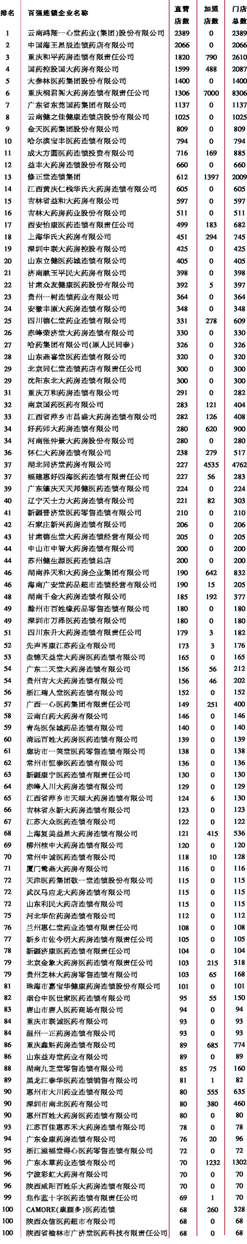 - 中國連鎖藥店直營力百強榜