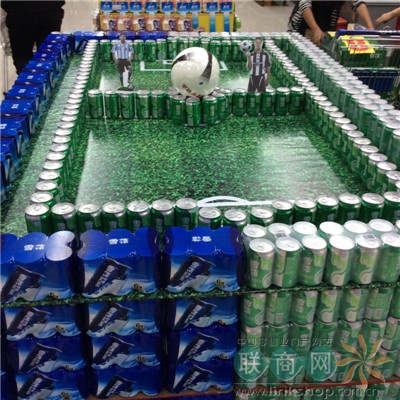 (圖:這是世界杯的促銷陳列,還有賽事進程表。最后一張圖的小瓶裝哈爾濱啤酒在世界杯賽事期間的銷量非常高。值得一提是那個貨架,李志堅在加入白云店后公司對所有貨架和設備都進行了更換,并請了新的保潔公司,總耗資300余萬元,使整個超市的營運提高了一個檔次。)