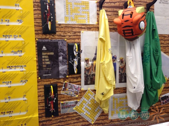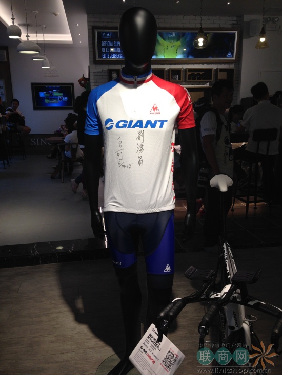 。ㄩT店里配合產(chǎn)品陳列的自行車均由捷安特提供,其中還包括環(huán)法賽中的冠軍戰(zhàn)車。)