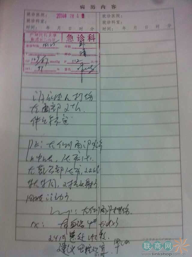 帖子中顯示,醫(yī)院檢查結(jié)果為,面部組織挫傷,需留院觀察。“事情過去兩天了,家樂福方面沒有任何說法,也無人去醫(yī)院探望,住院費(fèi)和醫(yī)藥費(fèi)也無人來支付。”葉某對此十分憤怒,“所有人都在忙著迎接家樂福中國區(qū)總裁8號-10號的到訪,根本沒有人關(guān)心基層員工的這件事。”