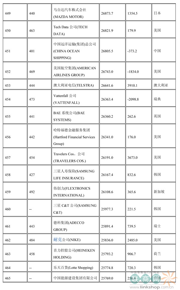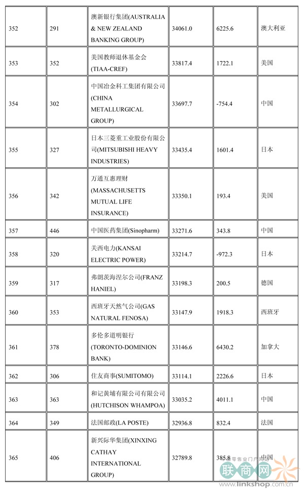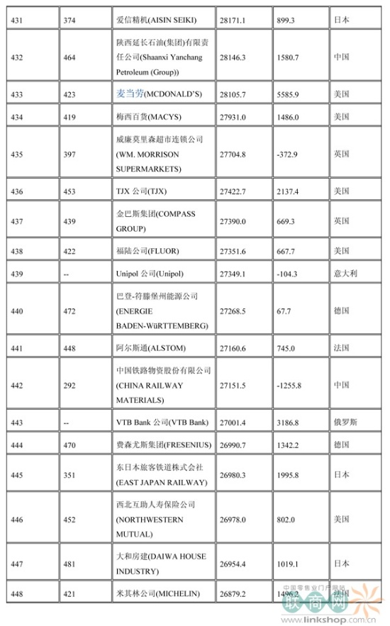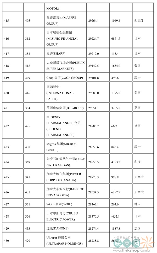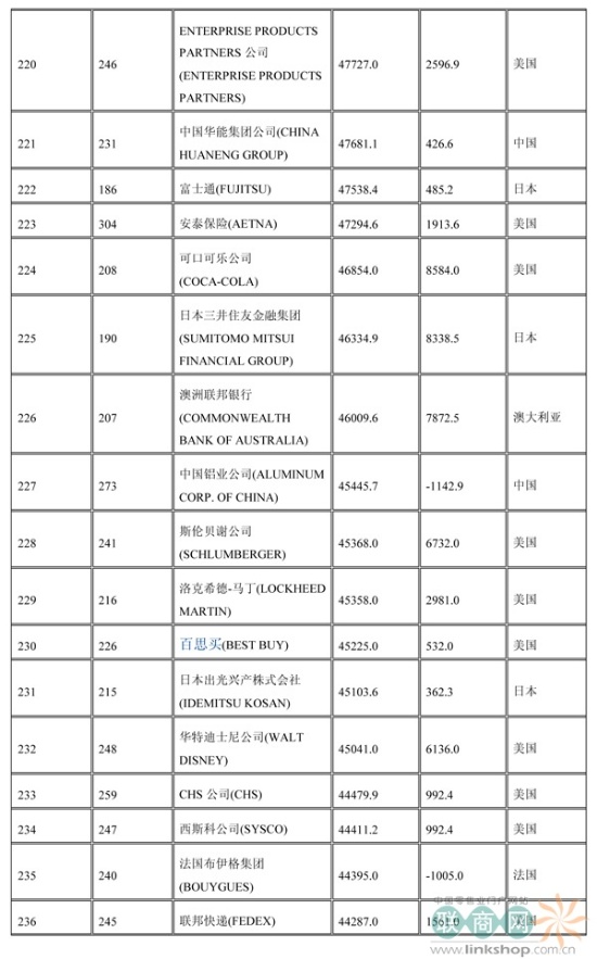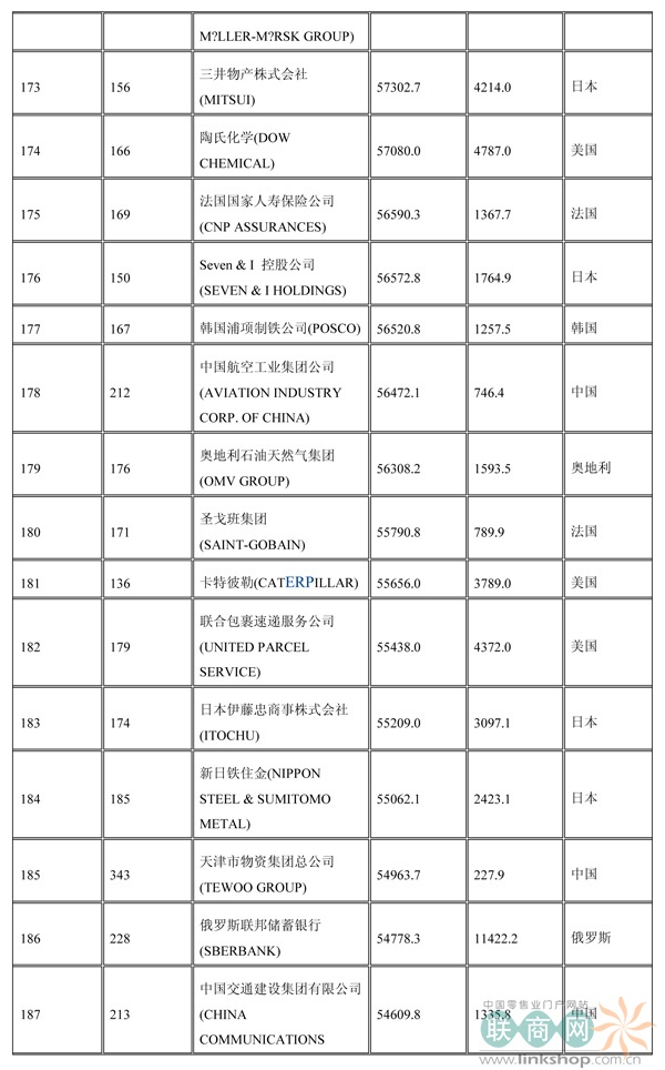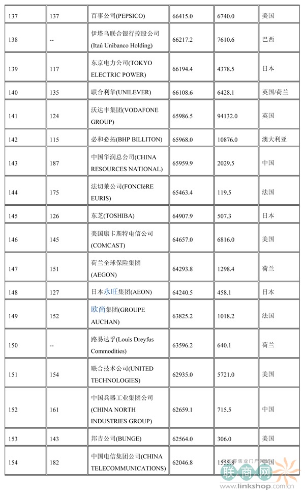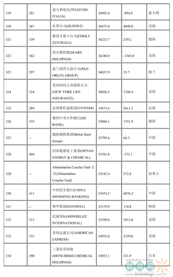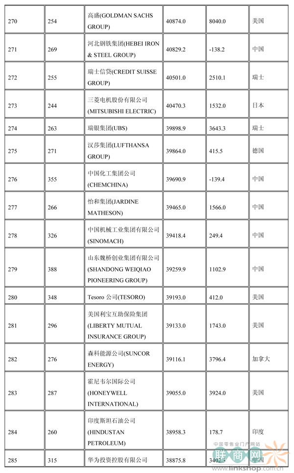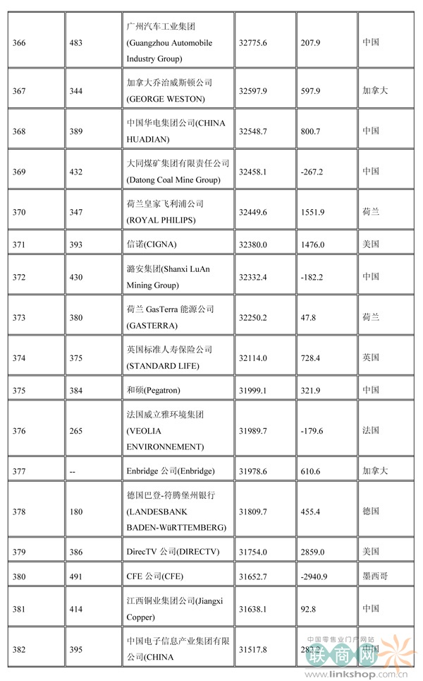 聯(lián)商網(wǎng)消息:北京時(shí)間2014年7月7日晚,財(cái)富中文網(wǎng)全球同步發(fā)布了最新的《財(cái)富》世界500強(qiáng)排行榜,零售業(yè)老大沃爾瑪重回榜首。中國(guó)上榜公司數(shù)量創(chuàng)紀(jì)錄地達(dá)到100家。中石化取代了埃克森美孚,在榜上排名第三,打破了該公司與沃爾瑪和殼牌三足鼎立的歷史。
