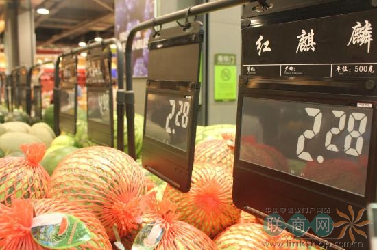 (水果區(qū)全部采用漢朔電子價(jià)簽,每塊成本大概在幾百塊左右,但價(jià)變時(shí)能省下很多事。)