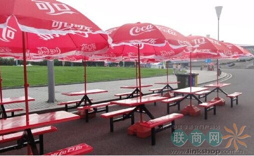 圖四:售賣點外面擺放有桌椅和遮陽傘,方便觀眾休息。