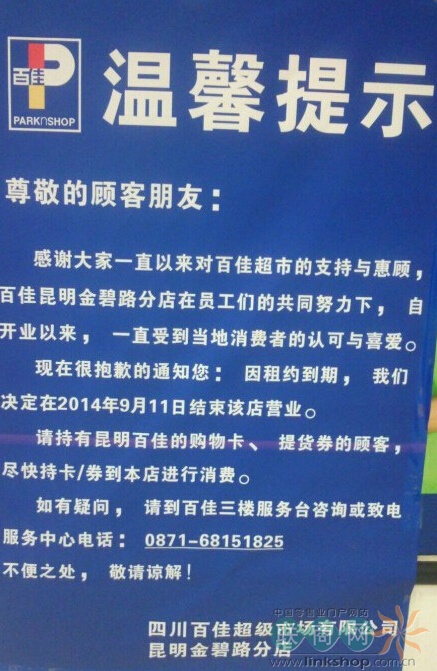 百佳超市昆明金碧路店將關門 不敵家樂福?