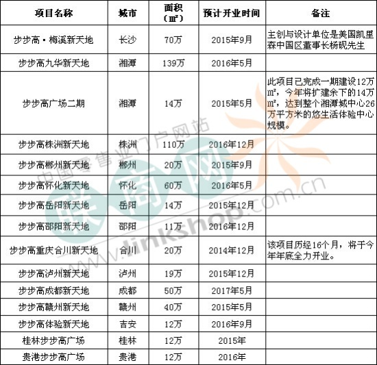 聯(lián)商獨(dú)家:步步高新天地15座城市項(xiàng)目一覽