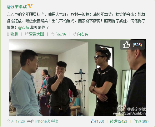 蘇寧李斌揭秘全能明星代言標準 疑似鄧超