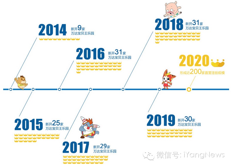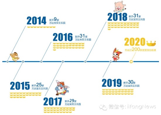 從9月份萬達寶貝王兒童主題樂園第一家店開業(yè),至今其已經(jīng)在東莞、淮安、馬鞍山、包頭、昆明等三四線城市開業(yè)5家。按照計劃,到2014年底開業(yè)9家店、2015年開業(yè)25家、2016年31家、2017年29家、2018年31家、2019年30家,到2020年在全國開業(yè)200家兒童樂園。