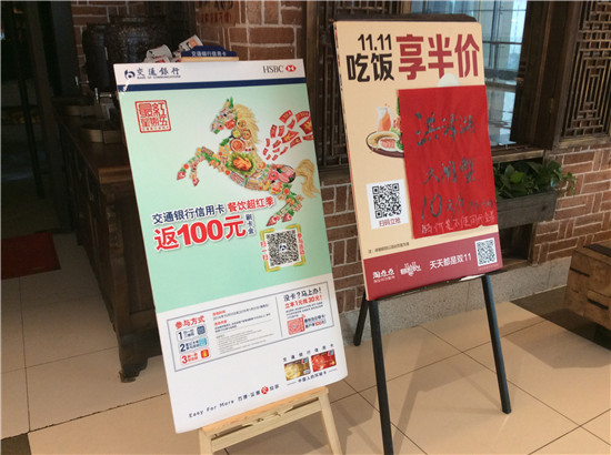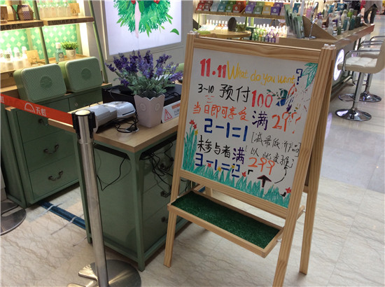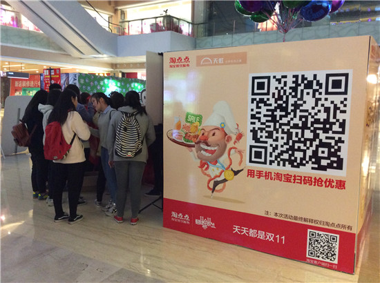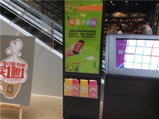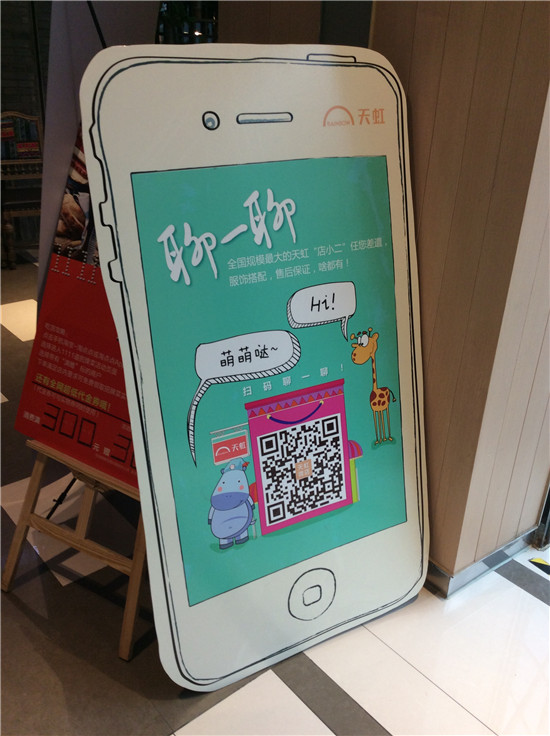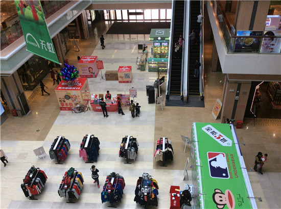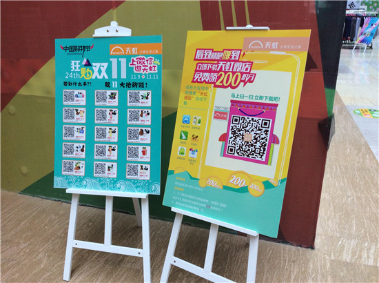 聯(lián)商網(wǎng)消息:在杭州五福天虹購物中心A座,消費(fèi)者買到了12元的羊毛衫。今天是中國購物節(jié)的第一天,聯(lián)商網(wǎng)記者在天虹購物中心A座看到,各大專柜都有不同力度的促銷。在B座,天虹與淘點(diǎn)點(diǎn)合作,消費(fèi)者不僅可以購買代金券在天虹的餐飲店使用,當(dāng)天支付滿2800元還會(huì)有自行車贈(zèng)送。在天虹購物中心隨處還可以看到掃碼辦微卡、微信購物、微信支付等活動(dòng)推廣。截止記者發(fā)稿,天虹方面沒有對(duì)中國購物節(jié)活動(dòng)的客流和銷售情況做任何回應(yīng),預(yù)計(jì)明天會(huì)有數(shù)據(jù)發(fā)布。