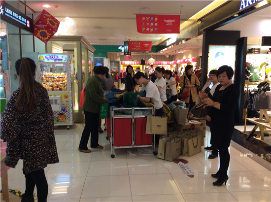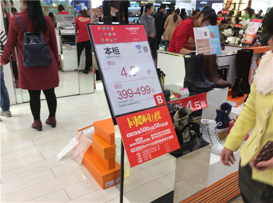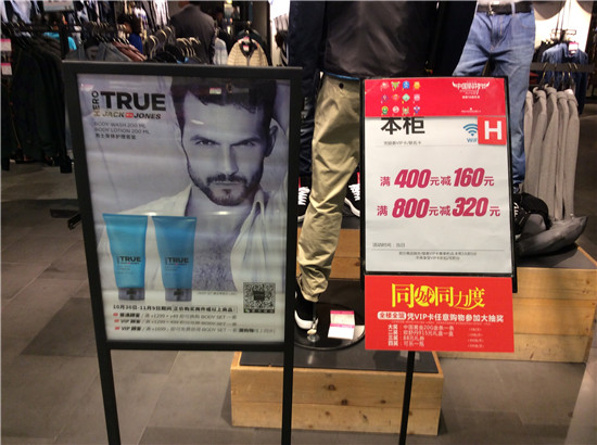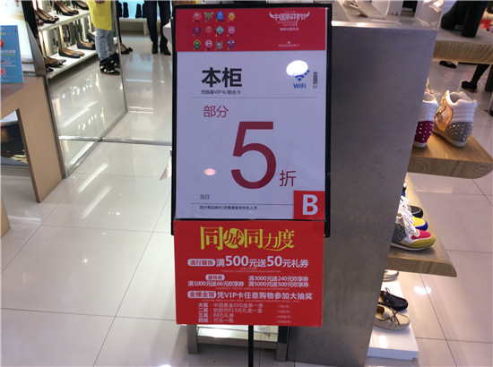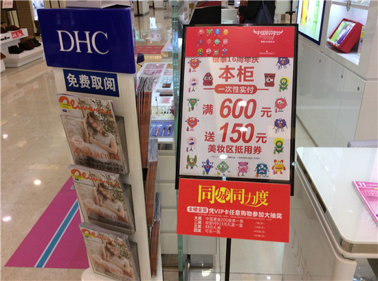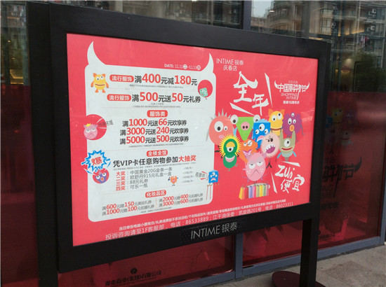 聯(lián)商網(wǎng)消息:在線上雙11拼的你死我活的時候,線下實體零售店也頻頻傳來捷報。銀泰義烏伊美店在剛剛結(jié)束的中國購物節(jié)第一天銷售增長了3倍。聯(lián)商網(wǎng)記者在銀泰杭州慶春店看到,今天的活動是服飾類商品滿400減180,化妝品類商品滿額送券。在老鳳祥專柜。黃金每克優(yōu)惠25元,鑲嵌類滿1000元減100元。以下是聯(lián)商網(wǎng)記者在現(xiàn)場發(fā)來的報道: