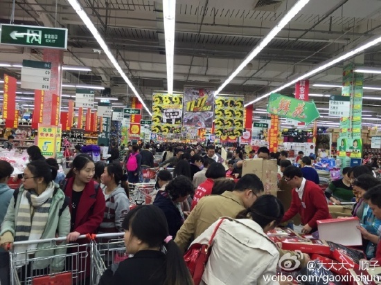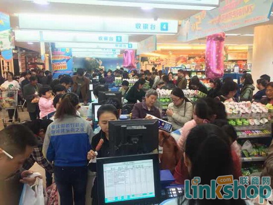 (河南金好來超市營業(yè)額是平時(shí)的6倍,與去年同期相比增長7倍,幾乎每個(gè)收銀臺(tái)都排隊(duì)20人左右,總店?duì)I業(yè)額過百萬;河南金好來總經(jīng)理吳金宏十分興奮的感慨到:幾乎全城10%的人都跑到他們門店去了。)