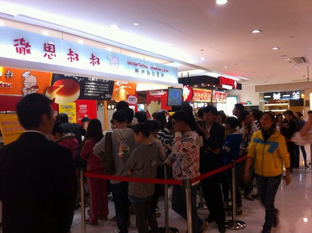 據(jù)王靜回憶,“徹思叔叔”上海第一家是開在久光百貨,每天上午10點,每當(dāng)久光百貨一開門營業(yè),就會有大批人流涌入。“排起長隊只為等買這個現(xiàn)烤的起司蛋糕。”