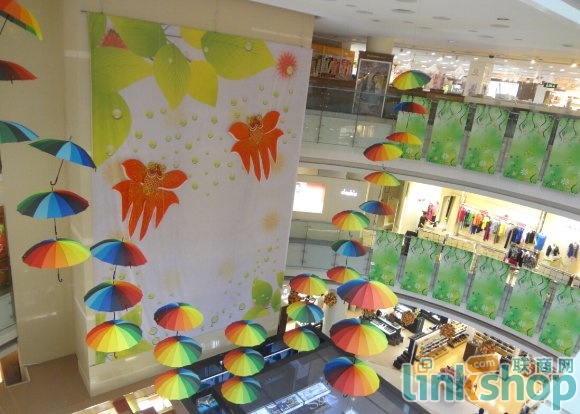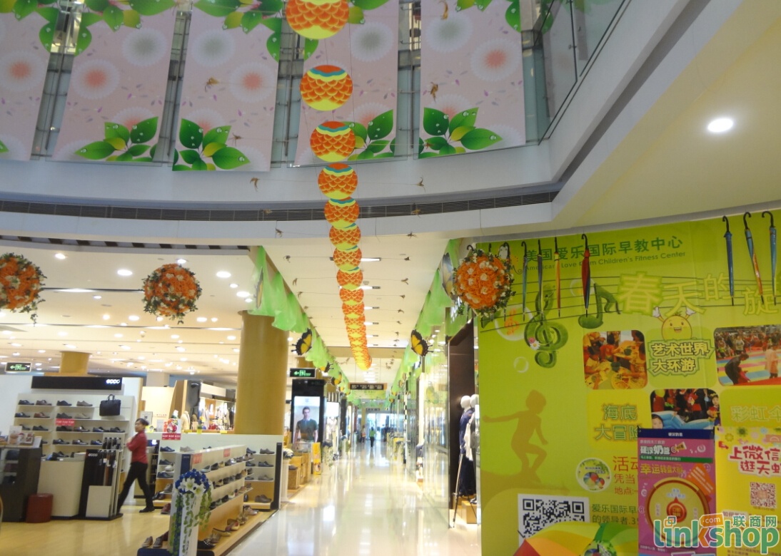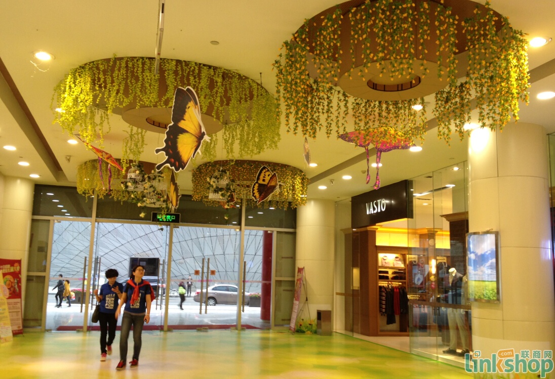 這是三月份“春色滿園”主題,不論是大堂、中庭、通道還是柜臺,到處看到鳥語花香、蝴蝶飛舞的場景,給顧客帶來新的視覺享受,感受到春的魅力。