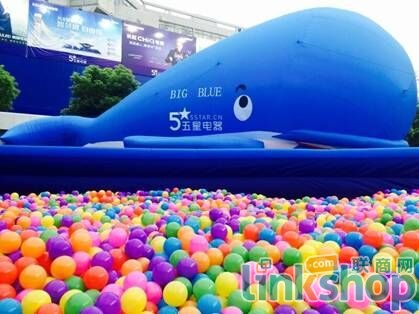 除了“大藍(lán)鯨”模型外,主辦方還在一旁設(shè)置了一個(gè)50平方米大小的海洋球池,池內(nèi)除了有數(shù)不清的海洋球,還有一些滑梯、秋千等游戲設(shè)備,小朋友可以進(jìn)入玩耍。