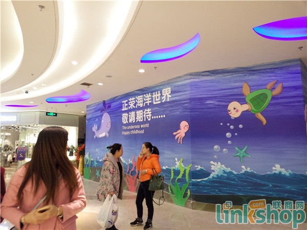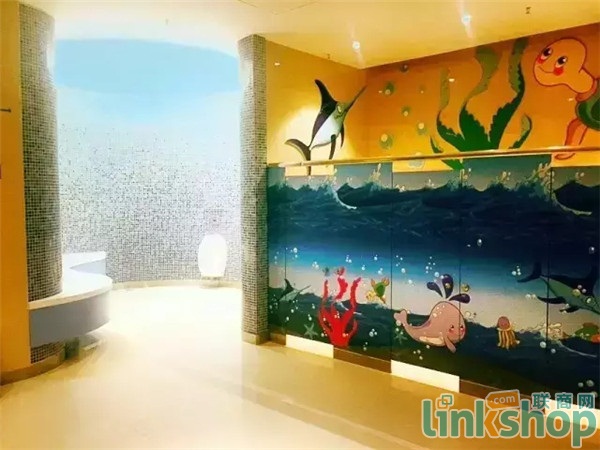 三樓則以兒童業(yè)態(tài)為主,匯聚了孩子王、檬檬樹、迪士尼、貝因美等品牌的母嬰店。為與樓層主題相適應(yīng),在三樓檬檬樹旁邊廁所的墻壁上,更是有海洋的貼圖,以此來吸引孩子的注意力。