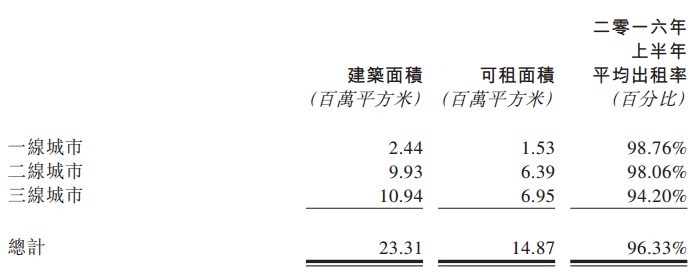已開(kāi)業(yè)持有物業(yè)總建筑面積達(dá)28.31百萬(wàn)平方米,較2015年底26.32百萬(wàn)平方米增長(zhǎng)7.56%。