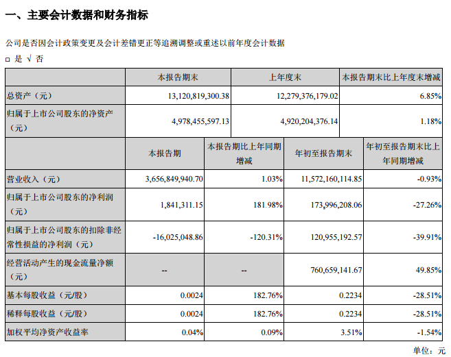 聯(lián)商網(wǎng)消息:10月28日晚間,步步高發(fā)布了2016年第三季度財(cái)務(wù)報(bào)告。報(bào)告顯示,前三季度公司實(shí)現(xiàn)營收115.72億元,較上年同期下滑0.93%,歸屬于上市公司股東的凈利潤為1.74億元,較上年同期下滑27.26%。