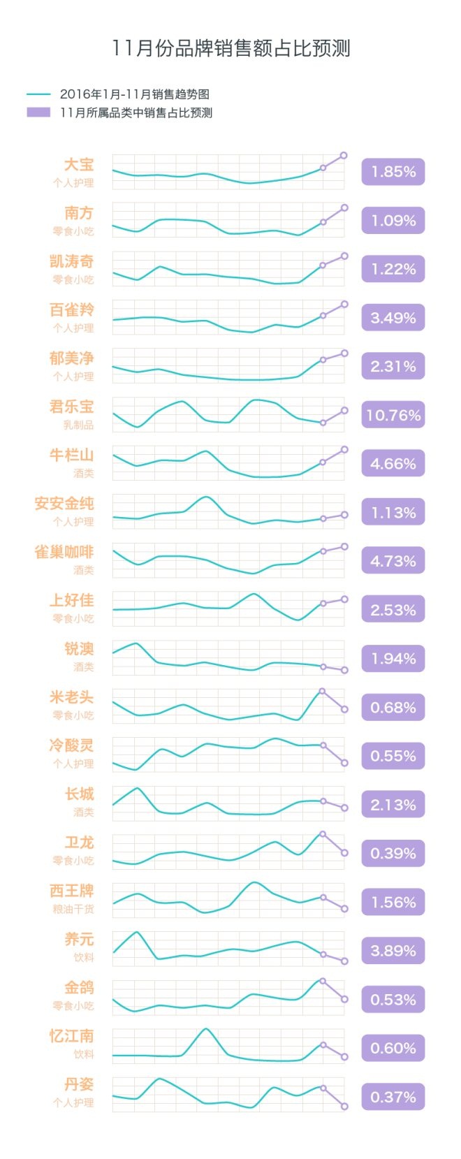 銷售額占比預(yù)測(cè),涉及所有品類與品牌,但只針對(duì)河南地區(qū)銷售額占比高于0.1%的品牌。