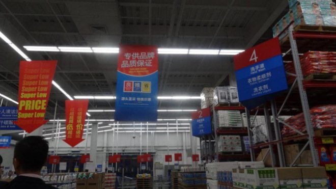 另外,精選重要品類國產(chǎn)商品3500余種,以及傳統(tǒng)的國產(chǎn)新鮮食品,這些商品集中于GEC倉儲(chǔ)式的國產(chǎn)賣場區(qū)域,含米面油、清潔、生活用紙等,以及傳統(tǒng)的國產(chǎn)新鮮食品,且天天低價(jià),被冠以“super low price”之名!