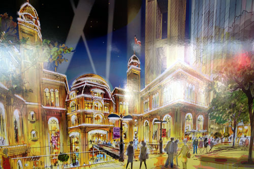 由于該項目內(nèi)建有一大規(guī)模室內(nèi)主題公園,因此也被稱作沈陽的“迪斯尼”。該項目2014年5月一期項目已經(jīng)完工,包括樂天百貨、影城等已經(jīng)營業(yè)。此次擬復(fù)工的是二期項目,總建筑面積近65萬平方米,其中商業(yè)建筑面積約為40萬平方米,業(yè)態(tài)包括酒店、公寓、辦公樓、購物中心\游樂場。