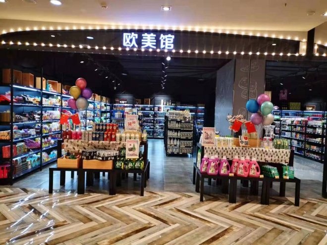 在歐美館,有法國地區(qū)盛產(chǎn)的紅酒、洋酒如拉菲、xo、人頭馬,比利時的巧克力,芬蘭的伏特加,意大利面、意大利醬、美國的薯片、俄羅斯的即食麥片以及最為出名的酸黃瓜,以及各類歐美的美妝護膚、女性用品等。
