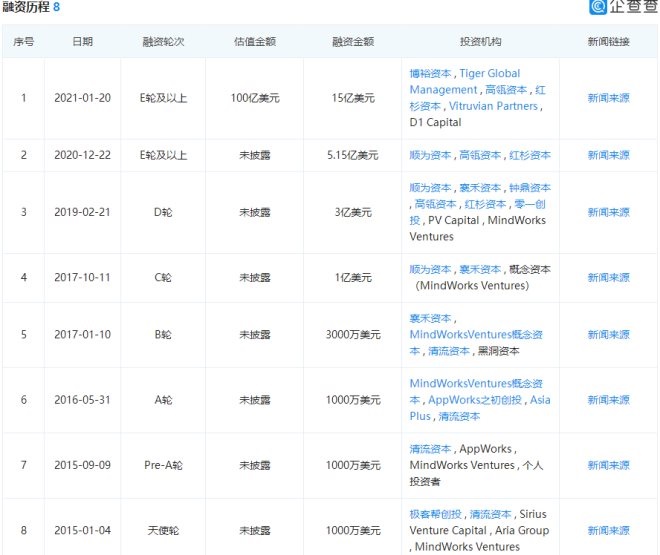 據(jù)企查查數(shù)據(jù),成立至今貨拉拉已完成8輪融資,最近一輪由博裕資本、高瓴資本等知名投資機構(gòu)投資的15億美元E輪以上的募資,估值達(dá)到了100億美元。