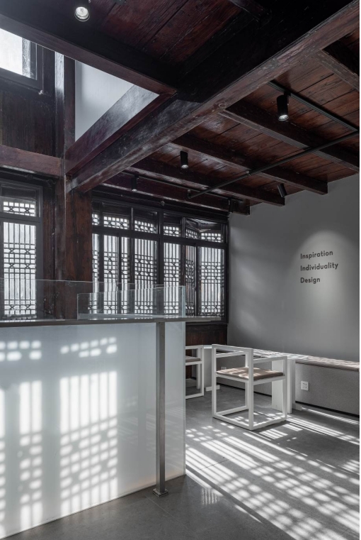 在保留建筑原有特色的同時(shí),喜茶還對(duì)古建筑進(jìn)行了現(xiàn)代化的設(shè)計(jì)。比如為了改變層低采光差的問(wèn)題,喜茶創(chuàng)造性地打通了建筑內(nèi)一至三層靠窗的樓板。這種大膽的空間布局設(shè)計(jì),不僅在功能性上讓門(mén)店采光更好,室內(nèi)更加明亮,同時(shí)也巧妙地實(shí)現(xiàn)了質(zhì)感十足的光影效果。