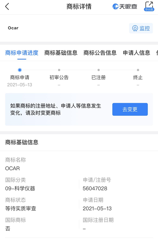 緊接著5月,OPPO 廣東移動(dòng)通信有限公司申請注冊了“OCAR”商標(biāo),該商標(biāo)的國際分類為科學(xué)儀器。外界將“OCAR”解讀為:O即OPPO,CAR則是汽車的意思,很有可能指OPPO的汽車項(xiàng)目。天眼查APP顯示,目前該商標(biāo)狀態(tài)仍處于“注冊申請中”。